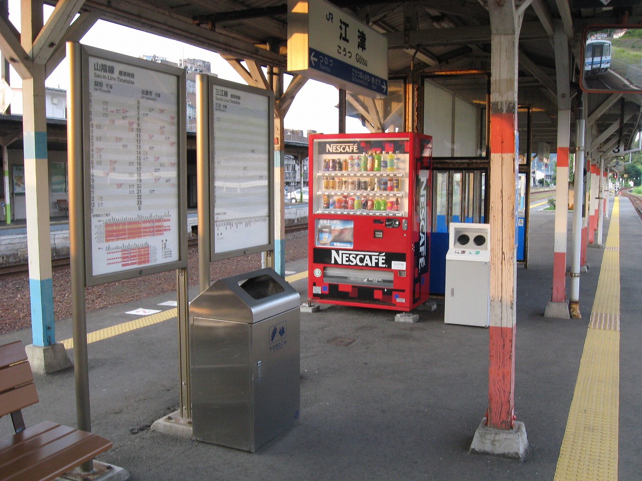 一時間後、江津駅着。三江線の列車は、このときは乗客は余りいなかった。もっと学生でいっぱいかと思っていたが…そういうスジもあったんだけどな。もう今日の昼に来訪した駅とはいえ、下車は初めてだったからやはり新鮮だった。それでまた少し旅情を回復する。
